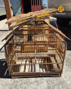 Foram apreendidos um exemplar de trinca-ferro-verdadeiro (Saltator similis), duas gaiolas de madeira e duas armadilhas utilizadas para captura de pássaros. O animal será encaminhado ao Centro de Triagem para a destinação adequada. Lá, a ave passará por avaliações e posteriormente, medidas de reabilitação para devolvê-la ao seu habitat natural.