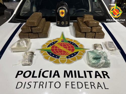 Nesta terça-feira (10), por volta das 22h, policiais militares do Tático Operacional Rodoviário (TOR), do Batalhão de Policiamento Rodoviário (BPRv), prenderam um autor (30) durante ponto de bloqueio na região de Planaltina, no Distrito Federal, após abordagem a um veículo alugado em Anápolis (GO) que seguia em direção ao estado do Tocantins transportando grande quantidade de drogas. O homem, que já possuía antecedentes criminais por homicídio, tráfico de drogas e furto, foi interceptado pelos policiais rodoviários após demonstrar comportamento suspeito ao avistar a fiscalização, resultando na retirada de circulação de entorpecentes que abasteceriam o comércio ilegal de drogas.